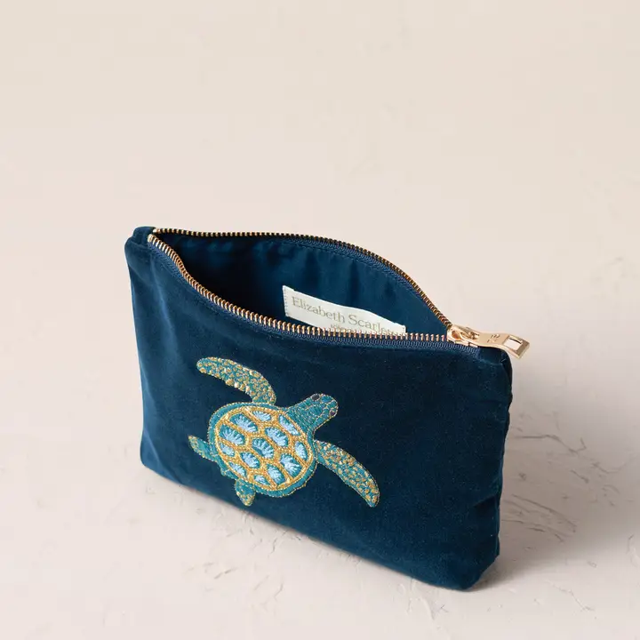 Elizabeth Scarlett Turtle Conservation Marine Navy Mini Pouch